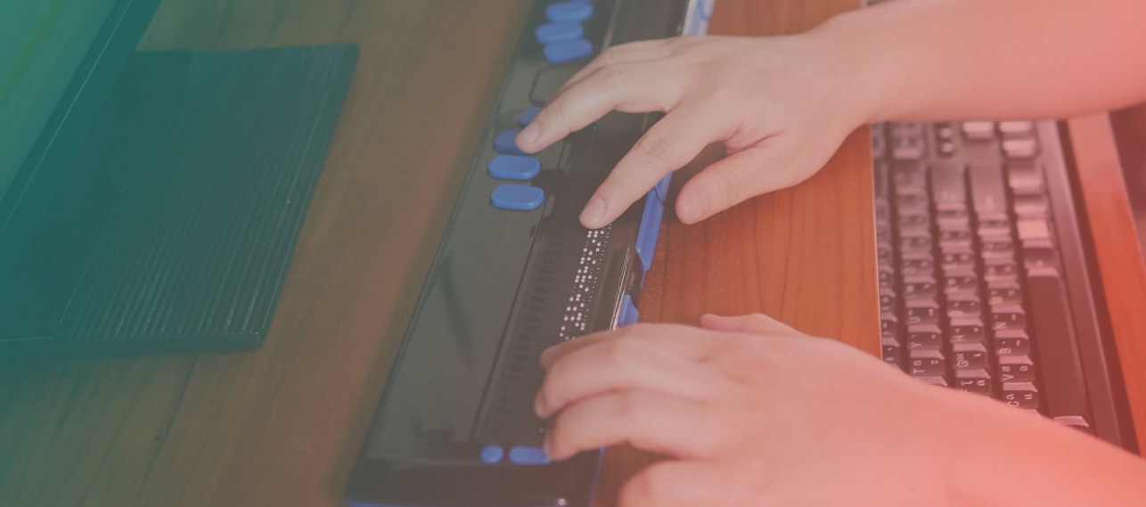 A laptop screen within an office setting showing a colorful venn diagram in an animation software program
